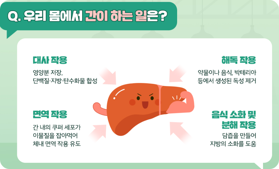 또한 비만은 지방간으로 이어지기 쉬우니 균형 잡힌 식단과 꾸준한 운동으로 적정 체중을 유지하는 것이 좋아요. 약물이나 건강기능식품도 무분별하게 복용하면 간에 부담을 줄 수 있으니 반드시 전문가와 상의 후 복용하세요.