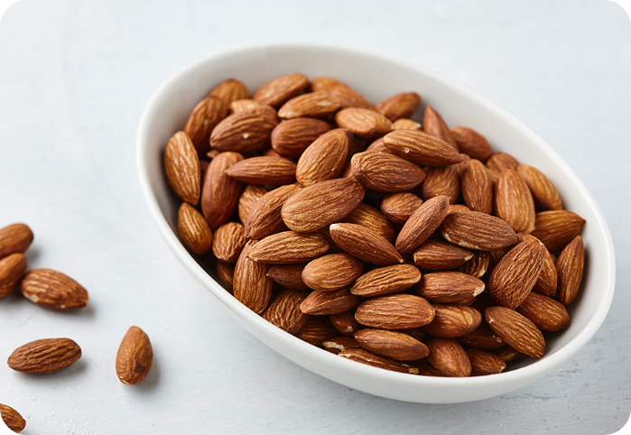 식이섬유는 장 안에서 대변의 부피를 늘리고 장운동을 활발하게 만들어 변비 예방과 개선에 효과적이에요. 또한 아몬드는 장 속 유익균의 먹이가 되는 프리바이오틱스 역할을 할 수 있다는 연구도 있어요.