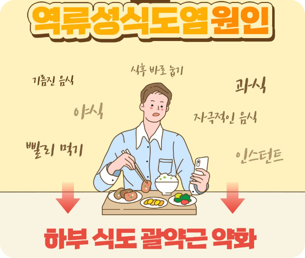 기침이 계속되니까 많은 분들이 감기약을 먹거나 이비인후과를 먼저 찾게 되는데, 치료가 잘 안 된다면 역류성 식도염 여부를 꼭 확인해 보세요. 식도와 기도가 해부학적으로 매우 가까이 위치하고 있어서, 위산 역류가 기도까지 영향을 미치는 건 생각보다 흔한 일이랍니다.