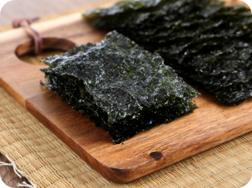 김에는 엽산 외에도 비타민 B12가 풍부하게 들어 있는데, 채식주의자에게 비타민 B12를 공급할 수 있는 거의 유일한 식물성 식품으로도 유명해요. 또한 김은 철분과 칼슘, 요오드도 풍부해서 빈혈 예방과 갑상선 건강에도 도움이 된답니다.