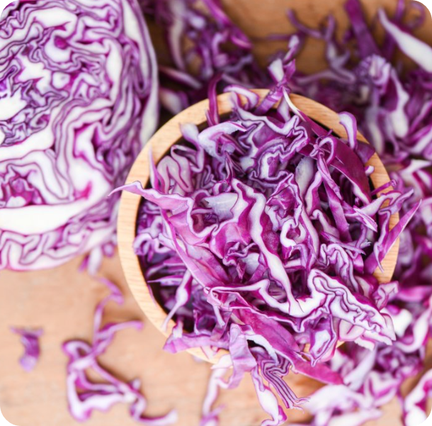 적양배추에는 제아잔틴과 루틴이라는 성분이 풍부하게 들어 있는데, 이 성분들이 자외선이 망막까지 도달하지 못하도록 막아주는 천연 자외선 차단제 역할을 해줍니다. 또한 안토시아닌 성분이 시력을 유지하고 눈의 피로를 풀어주는 데도 도움이 돼요.