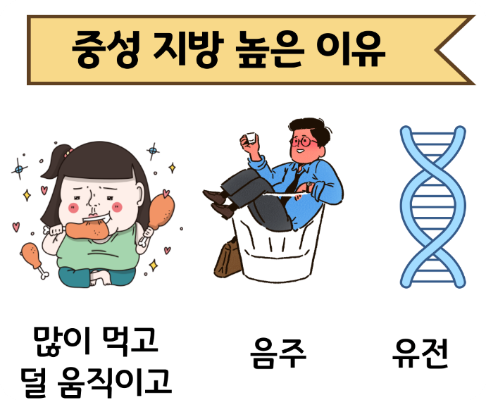동맥경화, 심근경색, 뇌졸중 같은 무서운 질병의 원인이 될 수 있거든요. 다행히 중성지방은 콜레스테롤과 달리 식습관과 운동 같은 생활습관의 영향을 아주 직접적으로 받는 수치예요.
