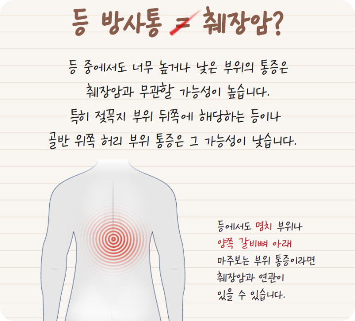 특히 암세포가 췌장 주변 신경으로 퍼지게 되면 등과 허리까지 통증이 번지는데, 일상생활이 힘들 정도로 심해지는 경우도 많답니다. 초기에는 그냥 소화불량이나 근육통으로 오해하기 쉬워서 소화제만 먹다가 늦게 발견되는 경우가 많으니, 원인 모를 복통이 1주 이상 지속된다면 꼭 병원에 가보세요.