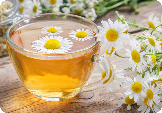 캐모마일차에는 항생제와 유사한 성분이 들어 있어서 몸속 염증과 세균에 대응하는 데 도움을 준다고 해요. 특히 카마줄렌이라는 성분이 대표적인 항염 성분인데요, 피부나 장기에 생긴 염증 반응을 가라앉히는 역할을 해요.