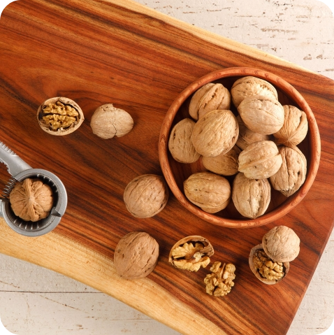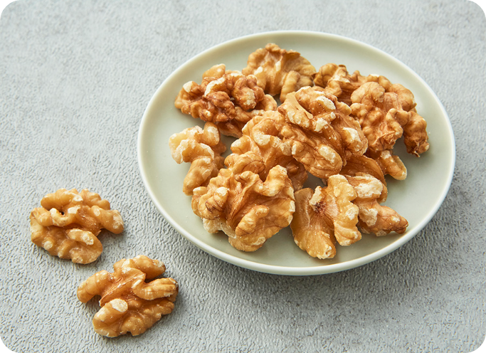 호두는 생김새부터가 사람의 뇌를 닮았는데, 실제로 뇌 건강에도 아주 좋은 식품이에요. 호두에 풍부한 알파리놀렌산이라는 성분이 체내에서 DHA로 변환되어 집중력과 기억력 향상에 도움을 줄 수 있어요.